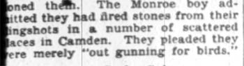 Isaac Marks, 409 Market street Gloucester, reported to Police Chief Charles J. Van Meter, of that city today that someone had fired through he glass pane in a rear door of his home at 4:00 PM yesterday. Marks had left his 14-year old grandson, Robert R. Dwyer, alone in the house, he told police, and when he returned late in the evening the boy told him of hearing a crash of glass and finding a hole in the pane.