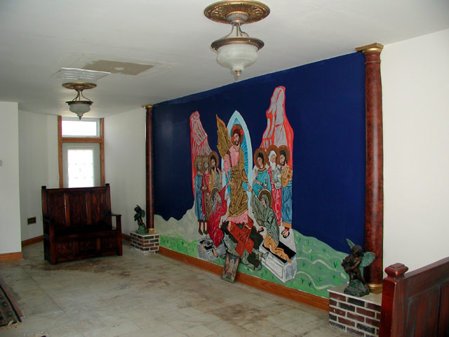 The two-story building at the far left is where Antonio Mecca did his embalming. The garage building to the left of the two-story building is where he kept his hearse and limousines.
