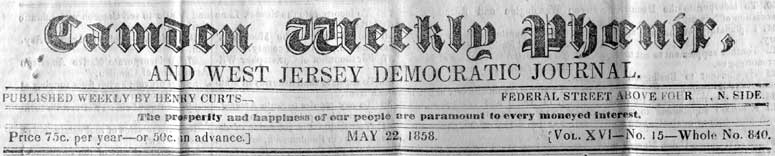 Weekly Phenix and West Jersey Democrat May 22, 1858 |