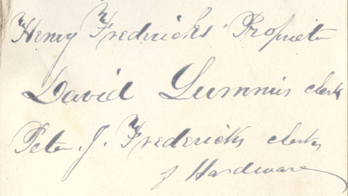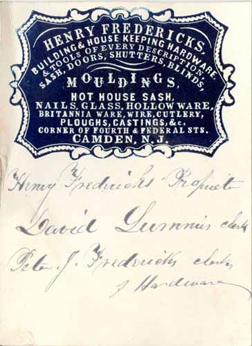 Henry Fredericks served as a director of the Association from 1858 to 1861, and again from 1862 to 1867. He later served as Camden County Sheriff, and had other civic and business interests in the city.