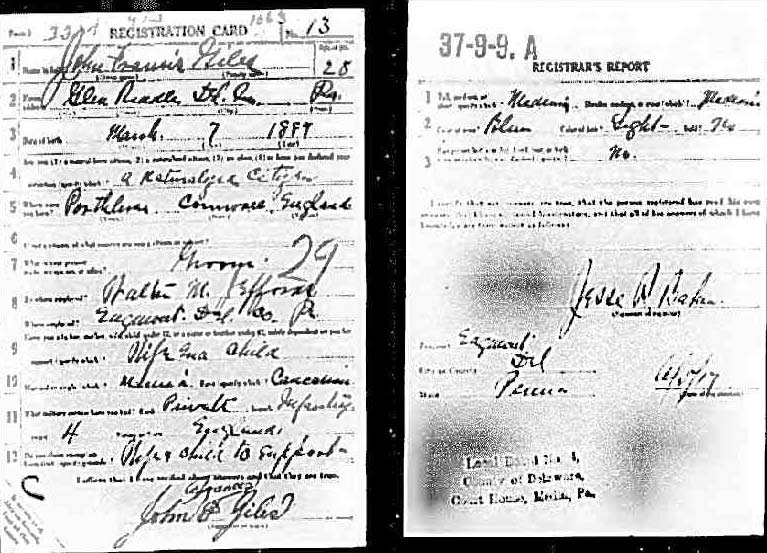 John Francis Giles moved to Delaware County, Pennsylvania where he worked around horses as a groom for many years, residing at Glen Riddle in 1917 and by 1930 in Middletown Township. By 1942 Mr. Giles was living at and working at Kimberton Farms in Phoenixville, East Vincent Township, Chester County, Pennsylvania. He was last a resident of Leola in Lancaster County. John Giles passed away in May of 1983. |