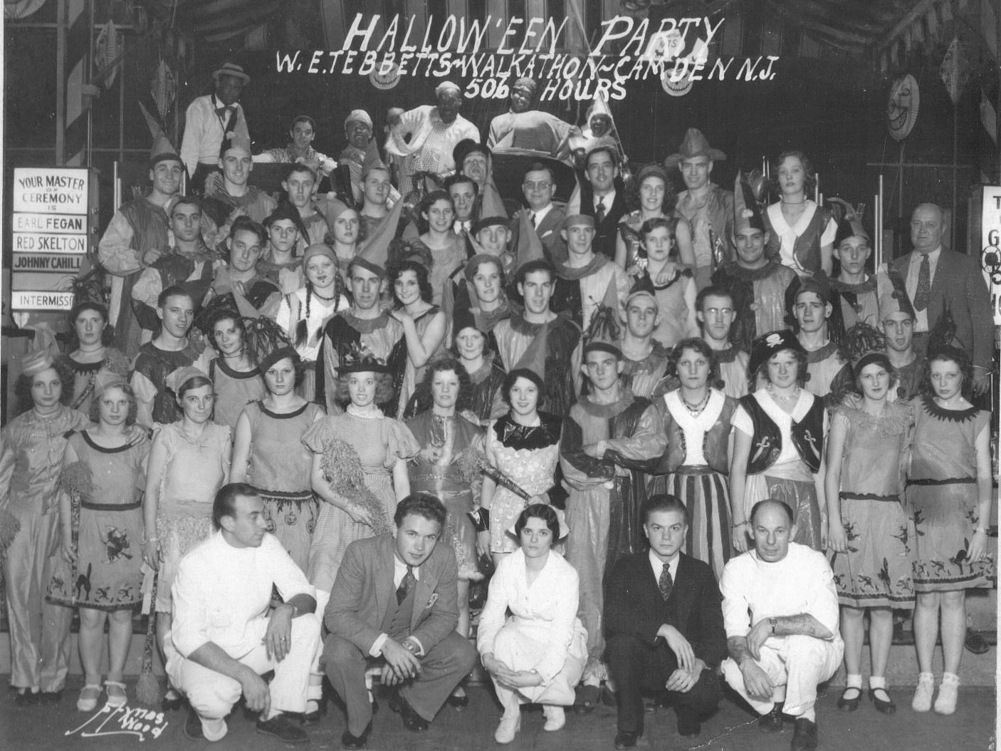 BEGINS 4000 WATCH START Four thousand spectators braved rainy weather to witness the opening of Walter E. Tebbetts' "walkathon" endurance contest at the hanger at Central Airport last night. At the stroke of nine, 45 couples, all residents of South Jersey or Philadelphia, went out on the floor to compete in an endurance grind that may last three months or more. Of the ninety contestants, only eight are veteran marathoners. The others are new to endurance competition. It is the first contest of its kind to be conducted in this vicinity. Many Unemployed Many of the entrants were there admittedly because of unemployment; the first prize of $1000 as well as weekly prizes and floor money attract them. Team No. 20 is a striking example of this fact. They are Mrs. Dorothy Carnes and her 19 year-old son John, of 2831 Pleasant Street. Mrs. Carnes expects- as does every other contestant- to be the winner of the grand prize. She has to win it, she told interviewers; her husband, Charles is out of work and there is no other way in which the family can get food. The crowd was a partisan one. Each team had rooters who called for songs or dances. Franky Wagner, third prize winner at the recent dance marathon, and Mildred Boyer, two of the eight veterans were roundly cheered, when they first made their appearance. The contestants appear in the ring for one hour, then all rest for fifteen minutes. Meanwhile professional performers entertain the crowd. Programs are presented every rest period under the skillful direction of "Dud" Nelson, master of ceremonies, aided by Les McCullam. "Red" Skelton heads a staff of entertainers. Ira Coffey and his "Walkathonians" furnish the music. Examined Frequently All contestants undergo frequent medical examinations and are placed on a diet consisting of three full meals a day and four light luncheons. No pie or cake is permitted them, but they have dessert in the form of pudding, milk, and fruit. Free admittance was given to the hundred who presented the walkathon advertisements in the Courier-Post Newspapers yesterday. The ads will be accepted again today. |