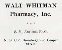 Whitman Hotel Pharmacy S.M. Axelrod, Pharmacist January 1939 Advertisement |
