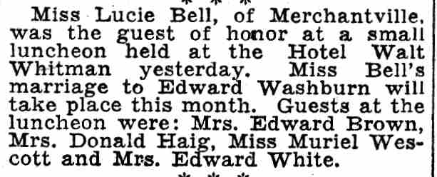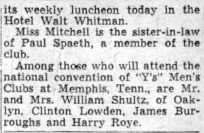 Soroptomist Club - Hotel Walt Whitman - Hilda Sampson - Elizabeth Hoell - Linden Street |