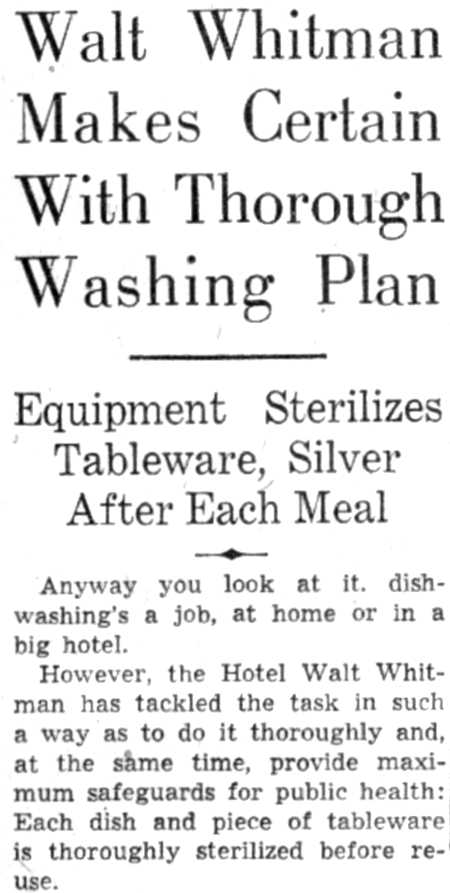 The Walt Whitman Hotel was demolished in the 1980s. |