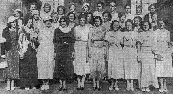 Ashland; Erma Wharton, Merchantville; Anna Walters, 2117 Watson Street, and Beulah Haines, 39 Morse Street. In the center row, right to left: Edith Fletcher, 910 North Twenty-third, street; Helen Prigger, Audubon; Bessie Fletcher, 910 North Twenty-third Street; Thelma Roddy, 1603 Holcain Avenue; Mildred Truxton, Pennsauken; Margaret Payne, 811 North Twenty-eighth Street; Ordneir Kleinschmidt, Westmont; Florence Oswald, 2802 Buren Street, and Helen Williamson, 2723 Pierce Avenue. In the rear row, right to left, are Florence Taylor, 2043 High Street; Dorothy Feidler, 78 Stewart Street; Theresa Sanflippo, 108 Stewart Street; Helen Emenecker, 57 North Twenty-second Street; Vera Hohwald, Maple Shade; Beatrice Speer, 3048 Federal Street; Marjorie