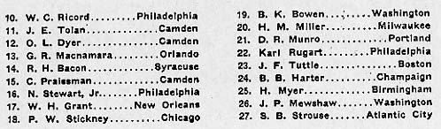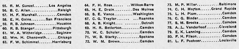 Across the back of the hall, against a background of palms and shrubbery and a banner bearing the legend "1888—WEBSTER—1938," was a long table at which were seated Warren Webster and his principal aides. Mayor George G. Brunner, of Camden, who made the address of the evening, was the only one present not directly connected with the Company.