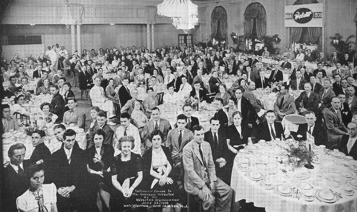 At that time, too, our capacity was fully developed. It will be remembered that the business under the name of Warren Webster & Company was founded in June, 1888, at 491 North Third Street, Philadelphia. The first factory was built at Point and Elm Streets, Camden, N. J., in 1895. Considerable additions were made to this factory in 1903 and again in 1918-1919. In 1923, since the factory was in the direct path of the Delaware River Bridge, it was sold and razed, and the Company moved to the present factory on Federal Street between 16th and 17th Streets, on January 2, 1924. The plant was again enlarged in 1927.
