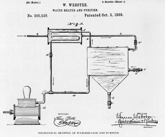 "In 1893," said Warren Webster, "shortly before we occupied the new factory in Camden, we placed a Webster Feedwater Heater on exhibition at the Columbia World Exposition at Chicago. A number of competitors also exhibited their equipment. Ours was a 3000-horsepower machine and the largest one there. It was installed and supervised in its operation by a Webster representative and it made the best record. It was displayed in operation—not heating, but just handling the feedwater for the boilers. It produced 210° F. as an average with full steam. This was about 1000-horsepower above its rated capacity.