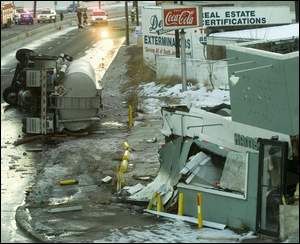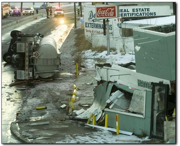 Police said the tanker smashed into a former Roney's and White Castle hamburger stand that has long been closed.