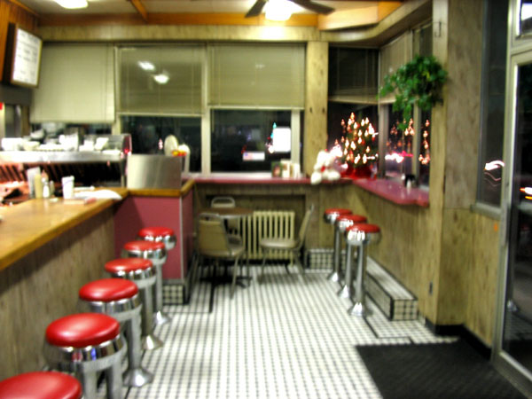 "Here are a couple of photos of the interior of the White Tower which since 1981 has been known as Roney's. It looks pretty much like it did years ago, same tile floor and so on."
