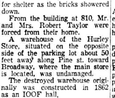 Streets and other locations. Edmund J. Alff ran his real estate and insurance business out of 502 Pine Street from 1901 until August of 1920. He also managed the building. In April of 1922 the Borstein Electric Company completed the relocation of their business from 930 Broadway to the former Wildey Hall. The building was acquired by the Harry Pinsky & Son Co. in 1923 and all lodge and social activities ceased as the building was converted into a warehouse, and the Borstein business moved back to Broadway. Isadore Borstein, of Borstein Electric, acquired the building during the 1930s and rented space to retail and industrial tenants. Wildey Hall was destroyed by fire in 1956. A two-story building was built in the site and in recent years has been utilized by the social services industry, |