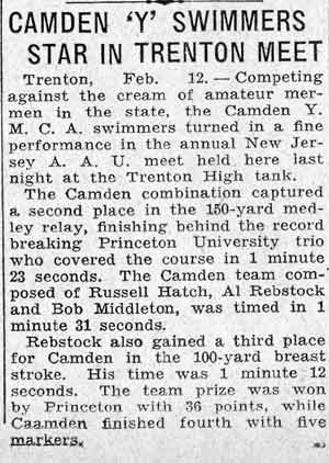 GYMNASIUM FLOOR The camden y. m. c. a. will dedicate a new gymnasium floor tomorrow in its Central Branch, 614 Federal street, replacing one that served for 30 years. Charles H. Wagner, president of the association, will conduct a meeting in the building at 5 p. m. at which dedicatory resolutions will be adopted. Following there will be "open house" for the public, a program of sports on the new floor and dancing. The executive committee of the board of directors will present the dedicatory resolutions. Members are Wagner, Elmer E. Long, Alonzo W. Stedman, William H. Atkinson and A. Millard Taylor. At a date to be announced later there is to be a dedication dinner at which there will be a speaker of national reputation. The sports program, arranged by Kenneth E. Smullin, "Y" director of physical education, will include two basketball games, a handball match, to determine the champion of the "Y," a badminton exhibition match, a gymnastic exhibition by members of the boys' gym classes, and a table tennis exhibition. The first basketball game to be played on the new floor will be between the Limited Senior team of the Y. M. C. A. and the Camden Catholic High School quintet. The other contest will be between the "Y" variety team and one made up of high school coaches in Camden and nearby communities. Music for the dance following the sports program will be furnished by the Nelson-Rainey Orchestra. |