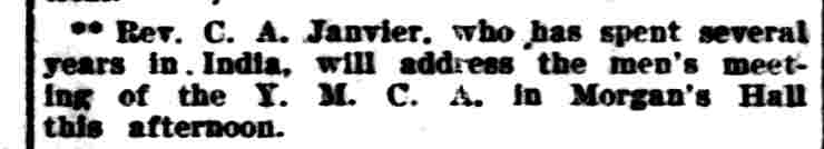 Morgan's Hall - Rev. C.A. Janvier - Y.M.C.A. |