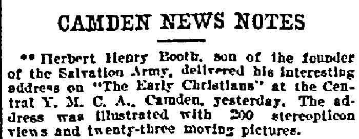 THE YOUNG MEN'S CHRISTIAN ASSOCIATION next to the church, and therefore next to the heart and head of all religious work, has made great strides forward during the past quarter of a century. It was organized October 16, 1878, at the residence of Samuel B. French, corner of Cooper Street and Front, by George H. Davis, W. Howard Curtiss, Bartram L. Bonsall, Samuel B. French, Howard Carrow and I. S. Conover. Mr. Davis was chosen chairman, and Mr. Conover secretary. It was "Resolved, That we, members of the church of Christ, and believers in Him, organize ourselves into a Young Men's Christian Association, to be called The Young Men's Christian Association of Camden." W. H. Curtiss, B. L. Bonsall and Fitch Taylor were appointed a committee on organization. Another committee was appointed to visit the pastors of the city with the view of obtaining their cooperation. The next meeting was held in the lecture room of Tabernacle Baptist Church (now the hall of Wm. B. Hatch Post, G. A. R.), on the 24th of the same month. By-laws and a constitution were adopted, and the officers elected were, President, George H. Davis; Vice-President, W. H. Bancroft; Corresponding Secretary, W. Howard Curtiss; Recording Secretary, George H. Higbee; Treasurer, Bartram L. Bonsall; Directors, Samuel B. French, Fitch Taylor, E. Dallas Stager, H. L. Titus and the officers. The association continued to meet in the Tabernacle until the 2d of December following, when the first meeting was held in the second story front room of the house at 318 Federal Street, and here the association remained during the year of 1879, growing in membership and influence, and carrying forward a good work at the Camden jail, at the rooms and at open-air meetings. With the beginning of 1880 the association occupied the desired second and third floors of the hall now known as the Association Hall, at Third Street and Market. But, notwithstanding the limited quarters at 318 Federal Street, the older members still retain pleasant memories of the year spent there, and perhaps it would be entirely proper to claim that in no year of its history was the devotional work of the association conducted with greater enthusiasm. In 1881 Wilbur F. Rose was elected president, and he continued until January 1885, during which time the membership increased greatly, and W. H. Geistweit and William Getty successively filled the post of general secretary. John J. Robinson became general secretary afterward, and in the spring of 1886 George H. Barker, general secretary of the Bordentown Association, assumed the duties as general secretary of the Camden organization and has since done very effective work. Upon the retirement of Mr. Rose as president, at the close of the year 1884, Walter M. Patton was elected president, and is now the efficient head of the association. . The official minutes show the officers of the association, from its institution to this date, to have been as follows: 1878.—President, George H. Davis; Vice-President, W..H. Bancroft, Corresponding Secretary, W. Howard Curtiss; Recording Secretary, George H. Higbee; Treasurer, Bartram L. Bonsall; Directors, Samuel B. French, Fitch Taylor, E. Dallas Stager and Harry L. Titus. 1879.—President, George H. Davis; Vice-President, William H. Bancroft; Corresponding Secretary, W. H. Curtiss; Recording Secretary, Jos. Alexander; Treasurer, B. L. Bonsall; Directors, Crowell S. Fewsmith, Fitch Taylor, J. Kelley Brown, Thomas S. Conover. 1880.—President, George H. Davis; Vice-President, Robert P. Stewart; General Secretary, W. H. Curtiss; Recording Secretary, Dilwyn C. Cliver; Treasurer, B. L. Bonsall; Directors, James E. Leadley, Samuel R. Murray, J. Kelley Brown, C S. Fewsmith, S.H. Higbee, Westcott Campbell, Thomas S. Conover, S. G. Wallace, Carlton M. Williams, Charles H. Armstrong. 1881.—President, Wilbur F. Rose; Vice-President, Robert P. Stewart; General Secretary, W. H. Curtiss; Financial Secretary, Asa L. Curtis; Treasurer, B. L. Bonsall; Directors, George H. Davis, A. Ledden Iszard, C.M. Williams, C.A. Hotchkiss, J.E. Leadley, S.G. Wallace, E.M. Howard, M.D., G.H. Higbee, E. Shivers, E.H. Plummer. 1882.—President, Wilbur F. Rose; Vice-President, Robert P. Stewart; General Secretary, George H. Davis; Recording Secretary, Clifford W. Shinn; Treasurer, Bartram L. Bonsall; Directors, Harris Graffn, E.M. Howard, M.D., A.L. Iszard, Samuel Finney, S.G. Wallace, C.A. Hotchkiss, E.H. Plummer, Asa L. Curtis, G.H. Higbee, Carlton M. Williams. 1883- President, Wilbur F. Rose; Vice-President, E.M. Howard, M.D.; General Secretary, W.S. Geistweit; Recording Secretary, Harris Graffen; Treasurer, George H. Higbee; Directors, J. Lynn Truscott, Harry Humphreys, Carlton M. Williams, C. A. Hotchkiss, S. Bryan Smith, Robert. P. Stewart, Samuel Finney, George H. Davis, F. W. Ayer. 1884.—President, Wilbur F. Rose; Vice-President, E. M. Howard, M.D.; Treasurer, G. H. Higbee; Recording Secretary, J. Lynn Truscott; Directors, E. H. Bryan, Samuel Russell, Carlton M. Williams, Walter M. Patton, Oscar C. Molan, E. E. Read, Jr., J. T. Harker, Harry Humphreys, E. A. Armstrong, Louis T. Derousse, Thomas H. Harris, E. R. Smiley, M.D.; George E. Taylor, David M. Chambers, J. L. Truscott. 1885.—President, Wilbur F. Rose; Vice-President, E. M. Howard, M.D.; Treasurer, Harry M. Anderson; Directors, E. H. Bryan, Oscar C. Molan, E. M. Howard, Samuel Russell, Walter M. Patton, Harry Humphreys, Carlton M. Williams, George H. Higbee, R. P. Stewart, E. A. Armstrong, Bartram L. Bonsall, John T. Seymour, S. G. Wallace, E. H. Plummer, Charles Danenhower. 1886.—President, Walter M. Patton; Vice-President, E. M. Howard, M.D.; Recording Secretary, John F. Seymour; Treasurer, Harry M. Anderson; Directors, Carlton M. Williams, Oscar C. Molan, E. H. Bryan, E. A. Armstrong, S.G. Wallace, B.L. Bonsall, W.F. Rose, J.E. Roberts, Charles L. Reeves, Christian Schrack, A. E. Street. "The Ladies' Auxiliary of the Young Men's Christian Associat