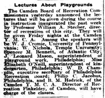 Recreation Commission Sponsors Move in City-Wide Plan for Curb on Juvenile Delinquency; Y.M.C.A. Aide Outlines Athletic Program A committee has been appointed to conduct a survey among underprivileged boys on the need for added recreation centers to curb juvenile delinquency by the Camden Recreation Commission. The survey would be conducted by the committee, in conjunction with the local National Youth Administration. Samuel E. Fulton, commission president, named C. Robert Perina, Samuel Brest and Jack Vadurro to the committee. The commission also approved a plan to join in sponsoring an enlarged boy's club activity in the local Y.M.C.A. William E. Lovett, director of boys work of the local "Y," outlined a plan to enlarge the basement of the Y.M.C.A. building to accommodate the members of boys groups throughout the city. Lovett said the basement will be furnished with boxing and wrestling rings, a library, quoit, tennis and handball courts, marble rings and other paraphernalia. Former Assemblyman Harry Roye and Herman Hensgen were named to co-operate with Lovett. Students at Philadelphia medical schools will be urged to aid at commission- operated playgrounds in the Spring and Summer. The Camden County Medical Association will be asked to co-operate in the plan to have all children using play sites examined for health defects. Playgrounds operated by the city of Philadelphia and by other agencies are given the services of senior medical students, Fulton reported.