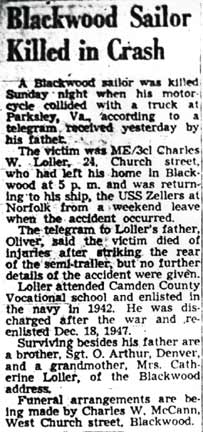 Camden Courier-Post February 22, 1949 Click on Image to Enlarge |