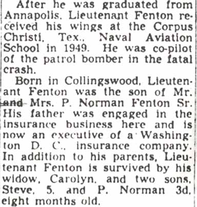 Fenton Jr. was killed when the the patrol bomber he was co-piloting