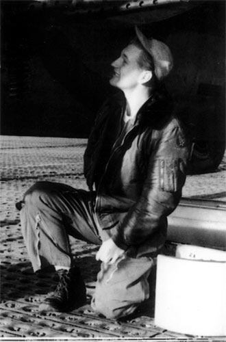 Rainey at Yokota AFB Checking his .50 caliber machine guns |