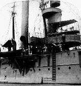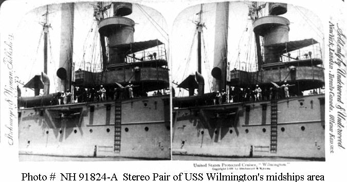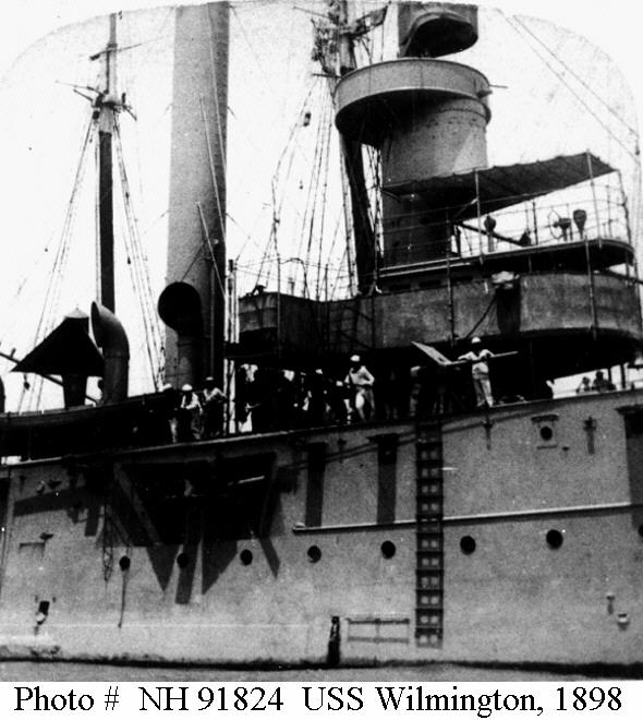 Wilmington (Gunboat No. 8) was laid down on 8 October 1894 at Newport News, VA., by the Newport News Shipbuilding Co., launched on 19 October 1895 sponsored by Mrs. Anne B. Gray, and commissioned on 13 May 1897, Comdr. Chapman C. Todd in command. The new gunboat conducted sea trials and underwent training off the east coast and joined the North Atlantic Squadron at Key West. Wilmington trained and underwent exercises in gunnery and testes in late 1897 and early 1898 as tension between the United States and Spain was rising steadily closer to open hostilities. On 21 April 1898, two months after the sinking of battleship Maine in Havana harbor, Cuba, the United States declared war on Spain. Meanwhile, the Navy had moved its warships into position to attack Spanish possessions in the Far East and in the Caribbean. On 15 July 1898, Wilmington arrived off Cape Cruz, near Manzanillo, Cuba, and joined Wompatuck on station with the blockading forces. The following day, Wilmington overhauled two small charcoal-burning fishing boats off the harbor mouth and questioned their Cuban crews. From the brief interrogation, the Americans learned that a submarine cable connected Santa Cruz and Juearo. The gunboat then proceeded to the spot mentioned by the fishermen and lowered a grappling hook. Finding the cable, Wilmington cut it and made for Cuarto Reales to join Helena (Gunboat No. 9), Wompatuck , and Hist. On 17 July, Wilmington led the three other ships to El Guayabal, 20 miles north of Manzanillo, Cuba. Upon their arrival at Guayabal, the warships found Scorpion, Hornet, and Osceola. During the afternoon hours, the four commanding officers met in conference and formulated preliminary plans for an expedition to Manzanillo to destroy the Spanish shipping there. Accordingly, at 0300 on 18 July, the American ships set out from Guayabal and set course for Manzanillo. At 0645, the group split up according to plan: Wilmington and Helena made for the north channel; Hist, Hornet, and Wompatuck for the south, Scorpion and Osceola for the central harbor entrance. Fifteen minutes later, the two largest ships entered the harbor with black smoke billowing from their tall funnels and gunners ready at their weapons. Taking particular care not to damage the city beyond the waterfront, the American gunners directed their gunfire solely at the Spanish ships and took a heavy toll of the steamers congregated there. Spanish supply steamer Purissima Concepcion caught fire alongside a dock and sank at her moorings, gunboat Maria Ponton blew up when her magazines exploded; gunboats Estrella and Delgado Perrado also burned and sank while two transports, Gloria and Jose Garcia, went down as well. Two small gunboats, Guantanamo and Guardian were driven ashore and shot to pieces. Beyond the effective range of Spanish shore batteries, the Americans emerged unscathed, leaving columns of smoke to mark the pyres of the enemy's supply and patrol vessels. The twenty-minute engagement ended with the attackers withdrawing to sea to resume routine patrol duties with the North Atlantic Squadron for the duration of hostilities. Late in the summer, the gunboat headed home and was drydocked at Boston from 24 September to 3 October. Following repairs, the ship departed the Massachusetts coast on 20 October, bound, via Charleston S.C., for Norfolk. Arriving at Hampton Roads on 31 October, the ship put into the Norfolk Navy Yard on the following day for further repairs, overhaul, and preparation for foreign service. With the reestablishment of the South Atlantic Squadron, Wilmington got underway on Christmas Eve and set her course for Puerto Rico. She arrived at San Juan on 30 December 1898 but resumed her voyage south on 2 January 1899 and proceeded via Port Castries, St. Lucia, to Port-of-Spain, Trinidad, where she made port on the 16th. Six days later, the gunboat left Trinidad behind and pointed her straight stem toward Venezuela. On the 23d, the ship arrived off Barima Point and stood up the Santa Catalina River, which led to the main branch of the Orinoco. After a brief stop at the town of Las Tablas, Wilmington put into Ciudad Bolivar on the 24th where the mayor, the American consul, and a number of city officials came on board the ship for a visit. Diplomatic affairs occupied the officers, with the commanding officer visiting the provincial governor and collector of customs. The ship was "full-dressed" with flags and appropriate ceremonial trappings on 28 January when she welcomed the citizens of the city on board. Two days later, the gunboat departed Ciudad Bolivar to return to Port-of-Spain. She was based at Trinidad through February and into March. During this time. she visited Guanta in northern Venezuela; Georgetown, British Guiana; and proceeded up the Surinam River to Paramaibo, Dutch Guiana. Departing Paramaibo on 6 March, she commenced the initial leg of her cruise up the Amazon River. Navigable for nearly 2,300 miles of its 3,200-mile length during the rainy season, the Amazon and its verdant banks presented the ship's company with interesting and unusual flora and fauna as she proceeded upriver. Calling at Para and Manaos, Brazil, en route, the ship arrived at the Peruvian border at Leticia, Peru, on 11 April. Heaving-to, the gunboat dropped anchor off Leticia to secure permission from Peruvian authorities to proceed further up the Amazon. With permission granted, Wilmington again got underway and arrived at Iquitos on 13 April. While numerous official calls were exchanged during the visit, the gunboat also acquired a small menagerie: three monkeys and one tiger cat which were presented to the ship by the Peruvians. On 18 April, the gunboat departed Iquitos, headed back down stream, and reached Rio de Janeiro on 28 May, completing a 4,600-mile round-trip voyage on the Amazon. On 6 June, Wilmington entered the Brazilian government drydock at Rio de Janeiro for routine bottom cleaning and remained there until 4 July when she g