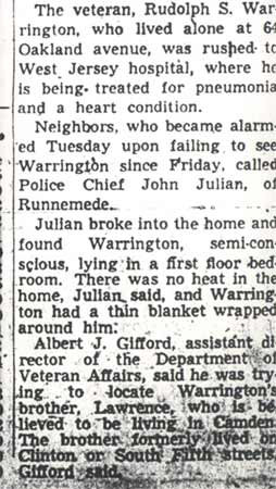 What happened to Rudolph Sylvester Warrington in March of 1950 is happening to our elderly veterans today still. Our veterans deserve better. |