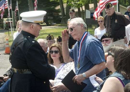 Retired Lt. Gen. Michael Davison Jr., (no relation to Dean Davison) 73, of Myrtle Beach, South Carolina, presented the star on Armed Forces Day with four platoon members and others attending. Davison was the 7th Cavalry regiment captain of C Company, Fifth Battalion, who commanded the battle from a mountaintop. "I feel good about bestowing this honor because this needed to be rectified," he said. Davison sent in his second platoon over three miles of rough terrain to help, but it did not arrive in time to save everyone in the first platoon of about 25. Half were wounded and three were killed. Essentially, they were all fighting for their lives," Davison concluded, adding he did not know Castaldi as well as other platoon members. Davison said he takes "full responsibility" that recognition of Castaldi's bravery "fell through the cracks" because a report could not be filed by the platoon leaders. A platoon sergeant was killed and its leader, Lt. Tom Golden, was severely wounded. Golden was transported by helicopter for medical treatment and experienced a long and tough recovery. "This has been a journey with some satisfaction, a little bit of redemption and some degree of closure," Davison said of the effort to recognize Castaldi. Castaldi's Silver Star citation credits his actions as "instrumental" in the survival of the platoon. "When the enemy first threatened to overrun the platoon, Cpl. Castaldi immediately responded to a call from a fellow soldier on the flank and moved under intense fire to an exposed position where he could bring effective fire to bear on the enemy. "He held this key position for many hours. When his M-60 machine gun ran out of ammo, he continued to hold the position and engaged the enemy with his pistol until an explosive devise thrown by enemy killed him." It was Golden who located Davison a few years ago because he wanted to file that long overdue action report that had haunted him.