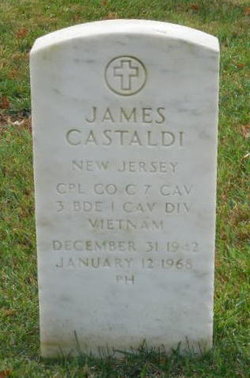 CORPORAL JAMES CASTALDI was born on December 31, 1942. His father was a Philadelphia policeman. Sadly, he died in 1945, leaving his wife, James, and a brother, John. James Castaldi's mother, Violet, remarried. She and her new husband, Samuel Snyder, eventually moved to Magnolia, New Jersey. James Castaldi attended Triton Regional High School in Runnemede, New Jersey. His home of record was Magnolia, New Jersey. James Castaldi began his tour of duty in Vietnam on September 25, 1967. Corporal Castaldi was killed in action in Quang Nam province by a hand grenade on January 12, 1968. He was brought back to New Jersey and buried at Beverly National Cemetery. He was survived by his mother, Violet Snyder, his stepfather, Samuel Snyder, a brother, John. Forty-Seven years later he was posthumously awarded the Silver Star for his heroism. His Silver Star citation credits his actions as "instrumental" in the survival of the platoon. "When the enemy first threatened to overrun the platoon, Cpl. Castaldi immediately responded to a call from a fellow soldier on the flank and moved under intense fire to an exposed position where he could bring effective fire to bear on the enemy. "He held this key position for many hours. When his M-60 machine gun ran out of ammo, he continued to hold the position and engaged the enemy with his pistol until an explosive devise thrown by enemy killed him." |
