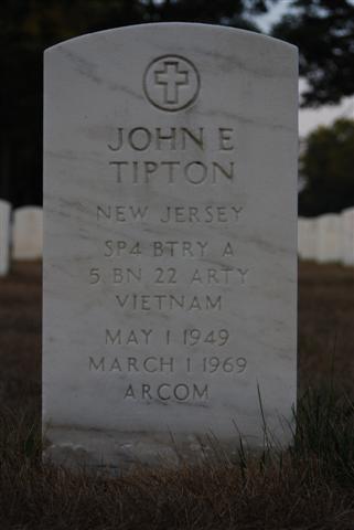 SPECIALIST FOURTH CLASS JOHN EDWARD TIPTON was born on May 1, 1949. His home of record is Pennsauken, NJ. He lived with his mother, stepfather and brother. John enjoyed motorcycling, wrestling, hiking, mountain climbing and rough water canoeing. SP4