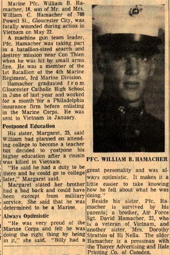 MESSAGES LEFT ON THEWALL-USA ** Note that some of these messages are from years ago and their contact information may not be good anymore ** Honoring you today Marine. Rest in peace Marine knowing that we will never forget your sacrifice and service to the Corps and our Country. Semper-Fi Marine. Cpl.Harton USMC Ret. Vietnam 1967 Ray Harton Gone, Dear Friend, But Never Forgotten Billy and I were in drum corps together back in the '60's. I'll never forget his quick wit and tall lanky build. He was a great friend, a great Marine, and a true hero. He is deeply missed. As the mother of a U.S. Marine who served in Iraq, I truly feel closer to Billy and what he fought for. OOH RAH Billy, Semper Fi. Hillary Dayton (Malsberger) |