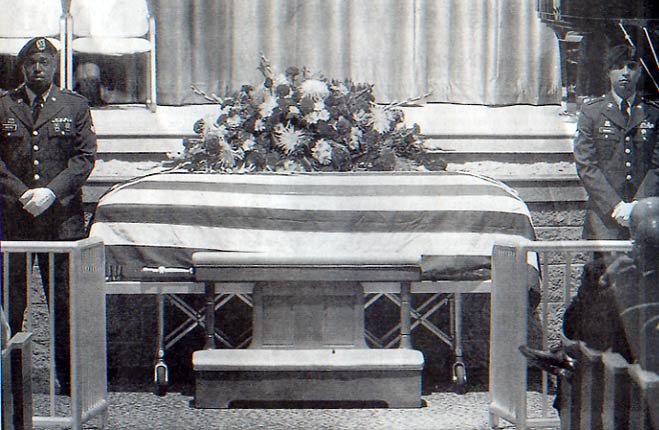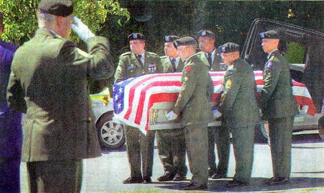 Mary Rinehart (left) says goodbye Monday to her brother, Army Spc. Anthony Joseph Dixon (top photo), during his burial at Brig. Gen. William C. Doyle Veterans Memorial Cemetery in Arneytown. Her parents, Jacquelyn and Alexander Dixon, are next to her. Dixon's casket (below) is carried from the hearse. Dixon, a Lindenwold resident, was killed by a tomb In Iraq on August 1. Gov. James E. Mcdreevey ordered all state and U.S. flags flown at half-staff Monday. |