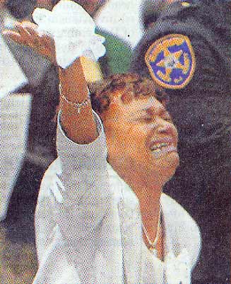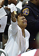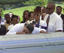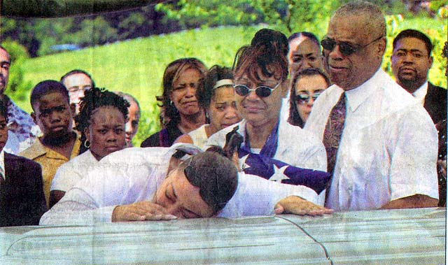 Camden Courier-Post - August 8, 2004 Jackie Dixon, the mother of Army Spec. Anthony Joseph Dixon, is overcome with emotion at his funeral Saturday at Lindenwold High School. Dixon was killed by a bomb last Sunday in Samarra, Iraq. Photo by PARIS L. GRAY |