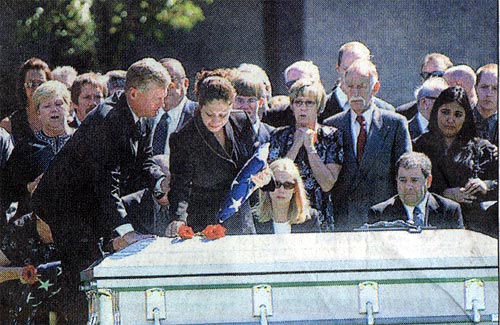 Maria Egan lays a flower on the casket of her husband, Sergeant First Class Michael Egan, who was killed September 19 in Iraq. |