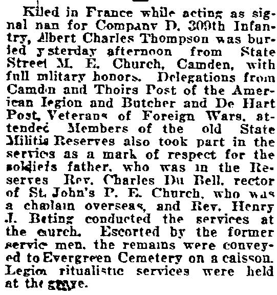 Albert Thompson was killed in action on October 29, 1918 at Bois des