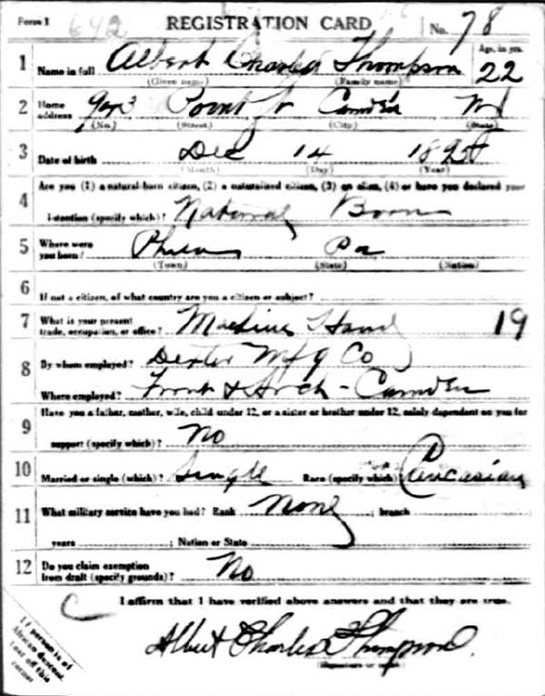 ALBERT CHARLES THOMPSON was born in Pennsylvania on December 14, 1895.