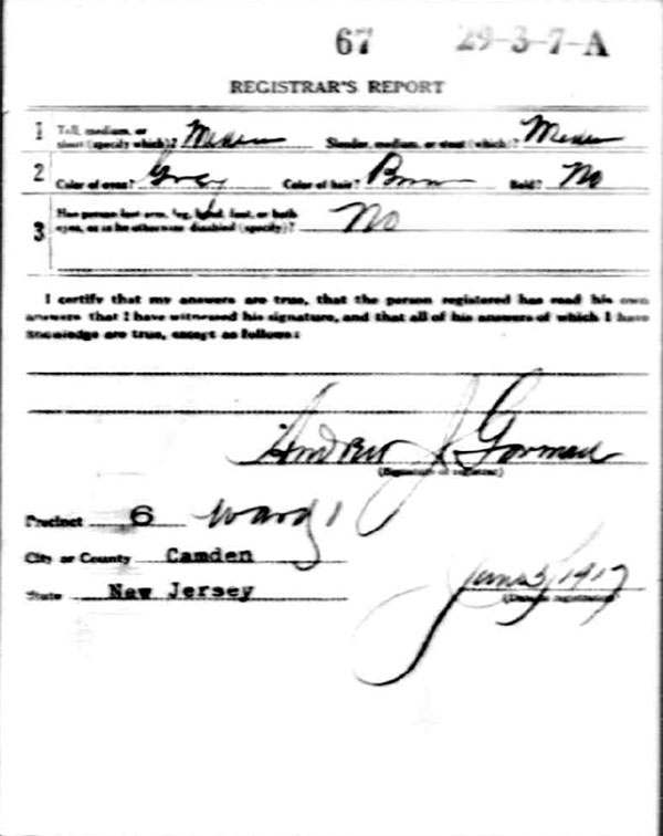be drafted, and was called up on February 25, 1918. Sent to Camp Dix NJ