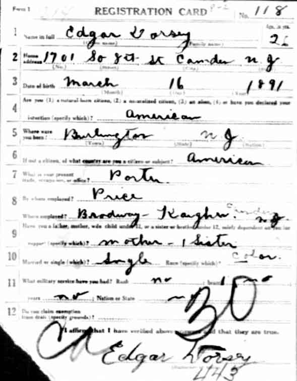 appears that Edward Dorsey registered for the draft in June of 1917 as