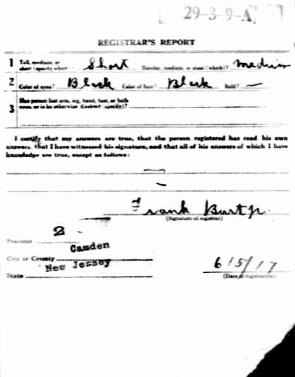 his birth date as March 16, 1891 in Burlington NJ, and stated that he