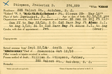 Stimpson family was living at 325 Walnut Avenue, Audubon NJ when Fred