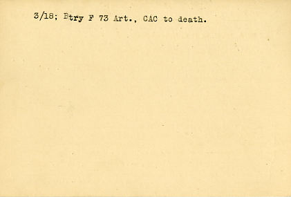 Fort Slocum NY, and then to Fort Adams RI. Assigned to Battery F, 73rd
