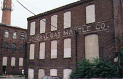 The Welsbach Gas Mantle Building was constructed of reinforced concrete with unusual window areas and was exceptionally well ventilated. The cost of the building was over 1 million dollars in 1916. Individual rooms were set up to accommodate each step of the process: knitting, hardening, dipping, etc. The women employees had their own facilities in the factory consisting of restrooms, music rooms, reading rooms, writing rooms, dressing rooms, and a hospital.During the manufacture of gas mantles in the early 1900's, ore containing radioactive thorium was processed. The thorium added to the gas mantles made them glow brighter when lit. As gas lighting was replaced by the electric light, the market for gas mantles dried up. The factory stopped manufacturing in the early 1940's.In 1992 the building was occupied by Ste-Lar Textiles, who was using the building as a warehouse. Department of Environmental Protection (NJDEP) examined the site and determined there was a serious environmental threat in the Welsbach building due to radiation contamination. As a first step they removed approximately 15,000 bolts of textiles contaminated with thorium. Removal of the contaminated textiles significantly reduced the potential health risks to the public in case of a fire. The NJDEP continues to study the site and plan for the eventual complete clean up. The plan is to have the building listed as a Superfund site.Producing Gas MantlesThe process of making gas mantles involved several steps, beginning with the knitting of the cotton/silk fabric. In the saturation step the fabric is saturated in lighting fluid. This fluid contains the thorium and cerium salts. The fabric is then dried on wood or glass forms and then carefully plaited together. An asbestos cord is drawn through to form a loop. The fabric is shaped to fit a mantle by fitting it over a wooden form. It was estimated that American consumers used 40,00,000 mantles per year when gas light was being used.The production process at Welsbach was state of the art at the time. Many other manufacturers were not equipped with the knowledge on the technical side of the business, nor the machinery and appliances for them to properly complete the process. Their competitor's equipment was assembled with unskilled labor and the product was shoddy.