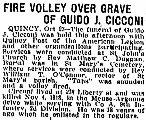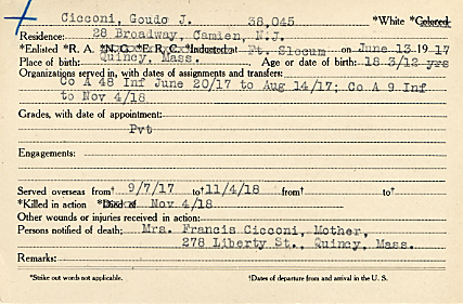 Guido John Cicconi was killed in action on November 4, 1918. He was