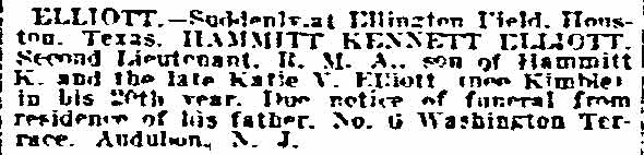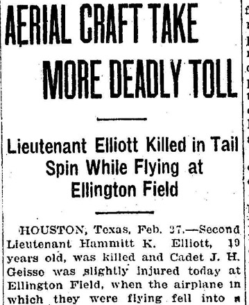 killed at the United States Aviation Field at Houston TX on February 27,