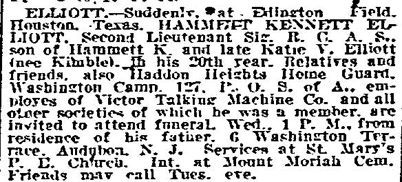 & Mae Elliot, of 306 Washington Terrace, Audubon NJ, and a sister,