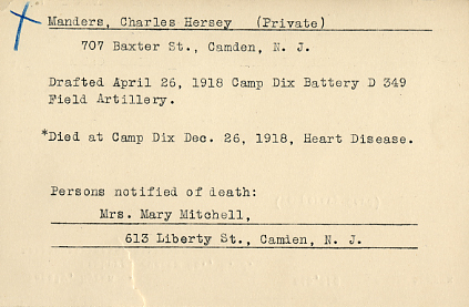 Charles Hersey Mander died of heart disease on December 26, 1918