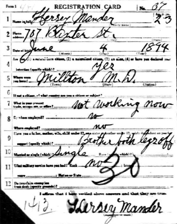 went by his middle name. By June of 1917 Hersey Mander