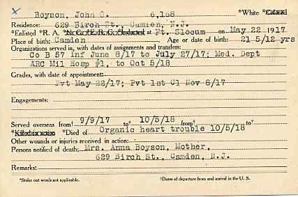 was born in Camden, New Jersey. The son of Mrs. Anna L. Boyson of 629