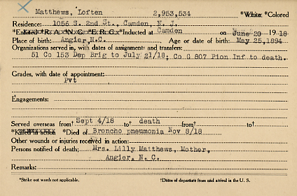 assigned to Company C, 807th Pioneer Infantry Regiment. Private Matthews