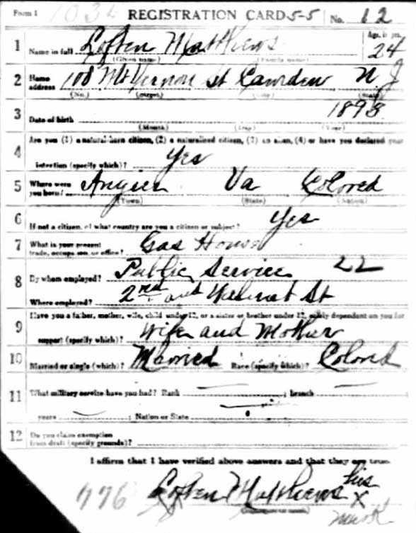 LOFTEN MATTHEWS was born in Angier, North Carolina on May 25, 1894.