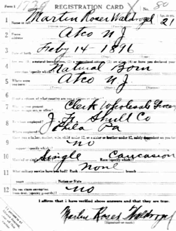 New Jersey. He was drafted February 25, 1918, and sent to Camp Dix for training.