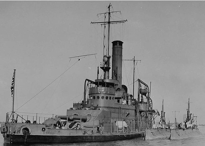 T h e USS Tallahassee (formerly USS Florida BM-9) in Hampton Roads, circa 1919. She is seen here tending two US Navy submarines; K-5 (SS-36) and K-6 (SS-37). |